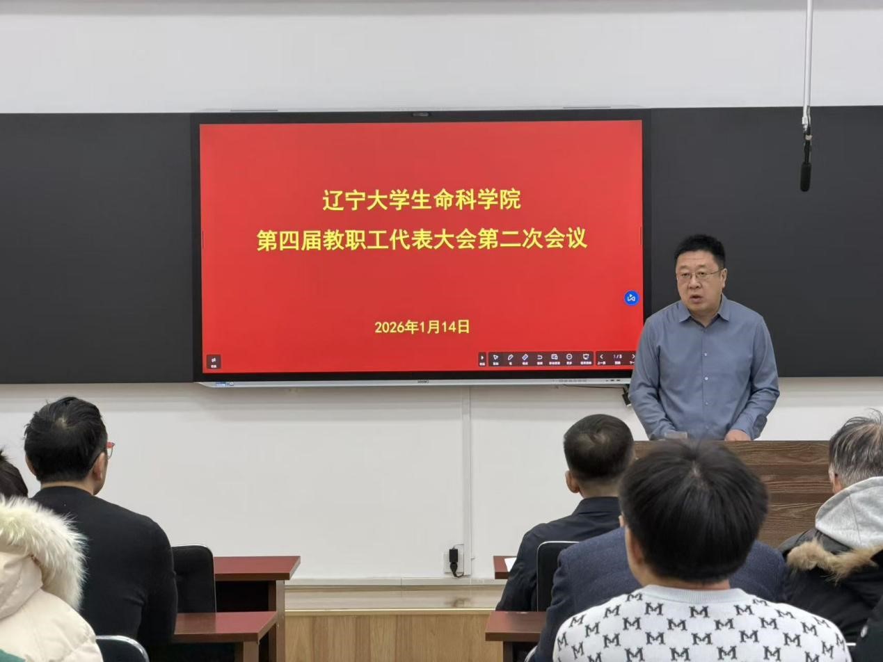 会议听取并审议院长胡风庆作的《生命科学院 2025年度工作报告》。报告全面总结和回顾2025年度学院各项工作实效和成绩,指出存在的问题与不足,并结合“十五五”规划对下一年度学院发展作出谋划和展望。报告指出,学院以习近平新时代中国特色社会主义思想为指导,紧扣学校“双一流”建设工作核心,圆满完成年度目标任务。未来,将锚定“十五五”时期高水平科技自立自强战略部署,将党建引领贯穿学院各项工作始终,以学科建设为抓手,聚焦博士点申报与一流本科专业建设,深化教育教学改革,提升科研创新能级与成果转化效率,精准对接地方需求,强化产学研融合,全面推进学院高质量发展。希望全体教职工代表凝心聚力、砥砺前行,为高校教育事业和教育强国建设贡献辽大力量。