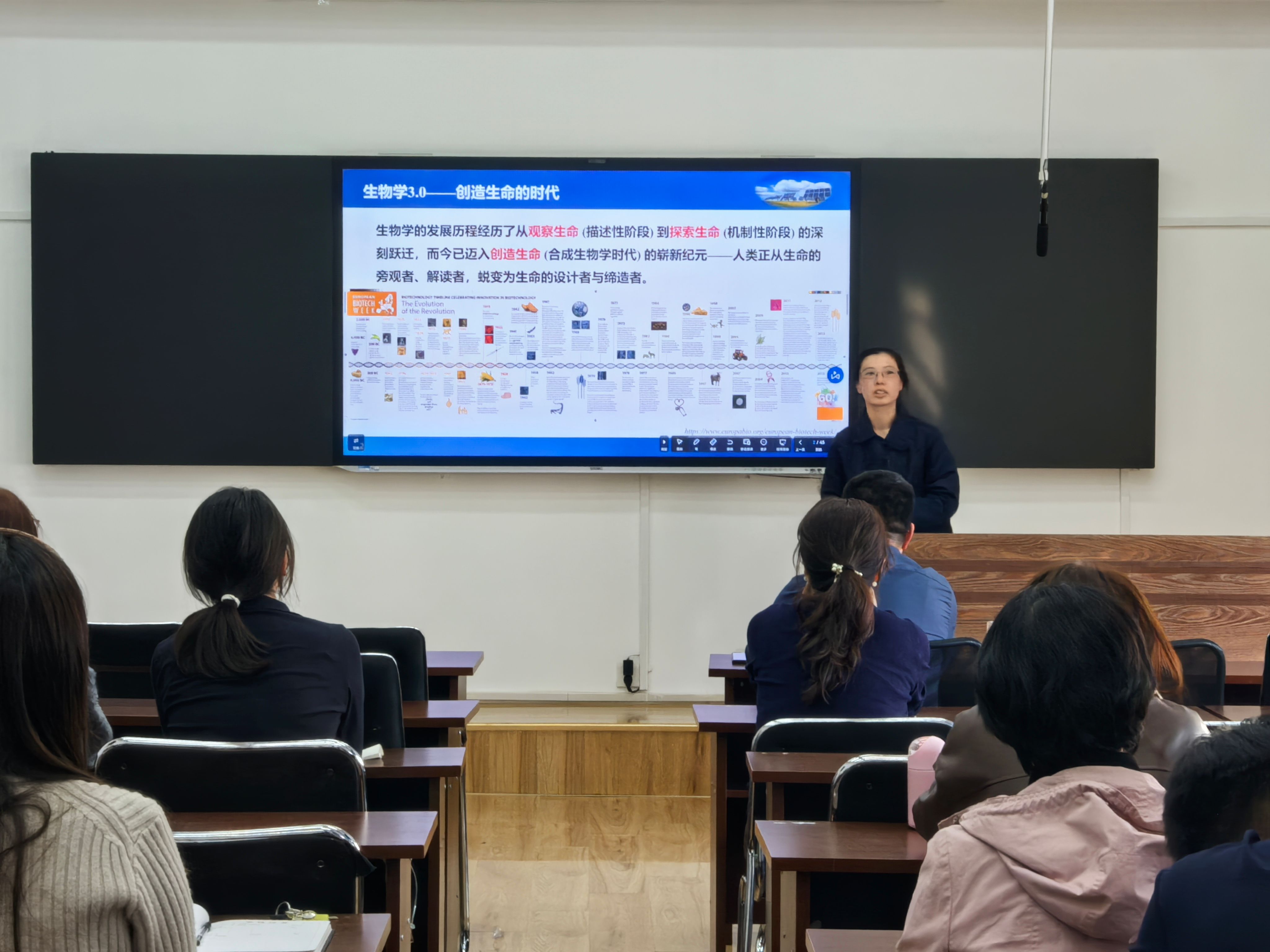 本次报告由生命科学院副教授张晶晶主讲,以“合成生物学与生物制造——新质生产力的战略引擎”为主题展开深度分享。报告立足当前生物学3.0时代的发展大背景,系统阐释了合成生物学通过工程化手段改造生命系统、生物制造依托活细胞完成绿色物质转化的核心科学内涵,全面梳理了该领域从技术萌芽到成熟应用的发展阶段,详解了基因编辑、底盘细胞构建、代谢通路调控等核心技术体系。同时,报告结合实际案例,着重强调合成生物学与生物制造作为赋能新质生产力的关键颠覆性技术,是推动传统产业绿色低碳升级、构建现代化产业体系的重要抓手,为学院生物学博士点相关研究方向的布局提供了前沿学术参考与实践思路。